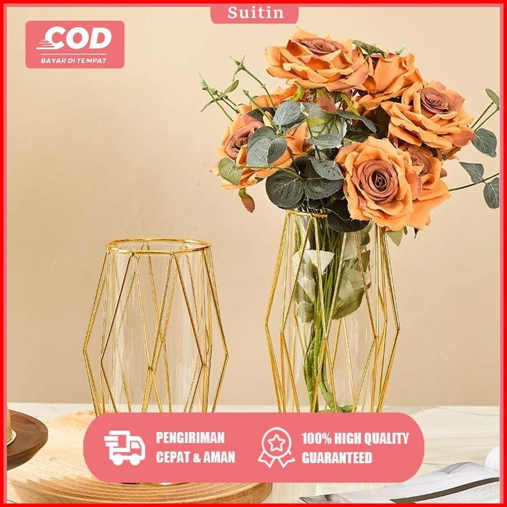 Suitin Vas Kaca Mewah Dekorasi Meja Vas Besi Belah Ketupat Ringan Dekorasi Vas Bunga Tabung Reaksi Kaca Hidroponik