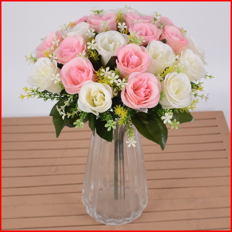 Suitin Buket Bunga Mawar Peony 18 Batang Artificial Plastic Aesthetic Bunga Hias Bunga Hiasan Ruang Tamu