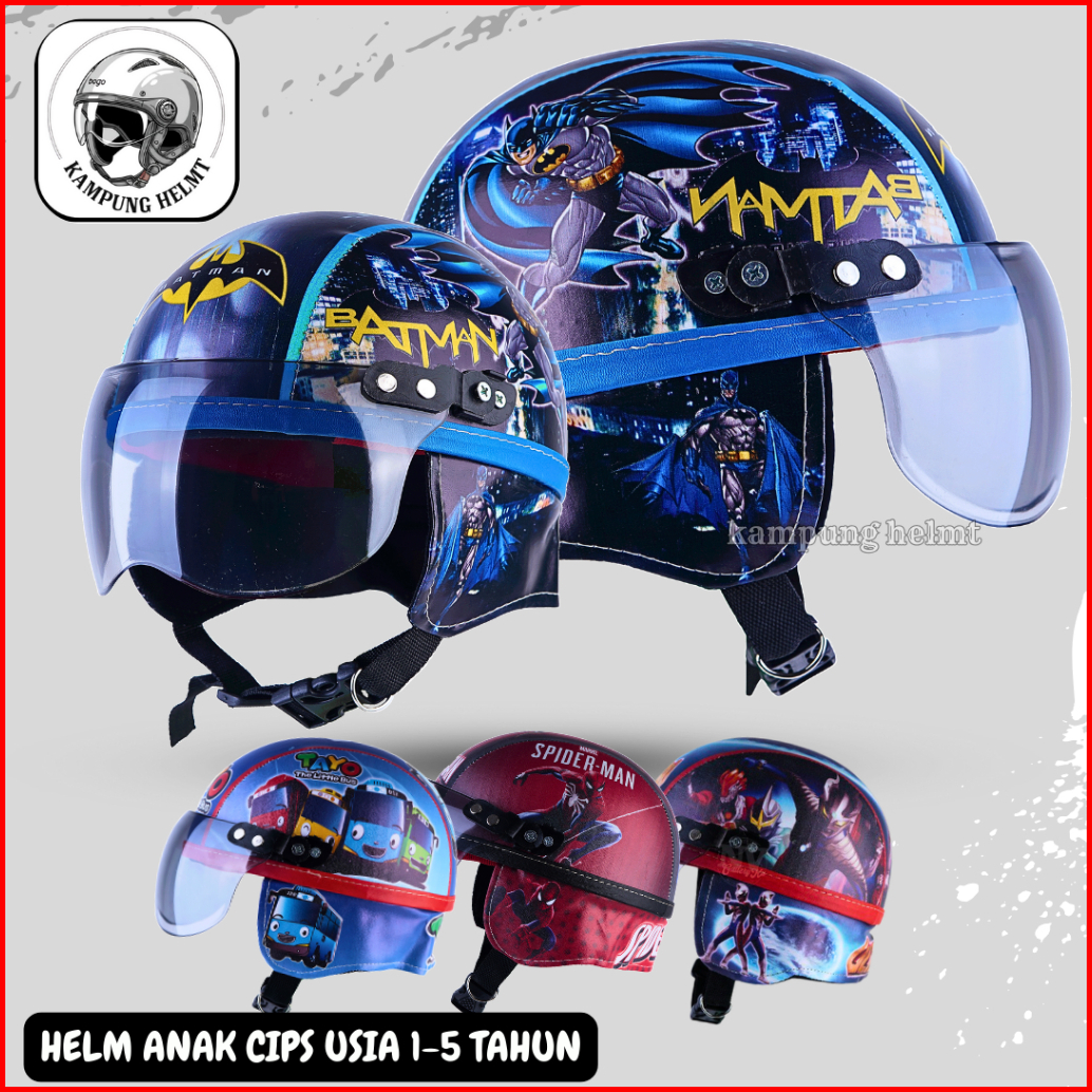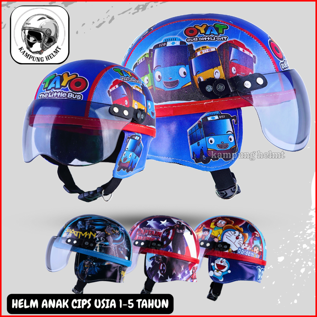 Helm Anak Cips Retro Usia 1 2 3 4 5 Tahun Full Kulit Motif Karakter
