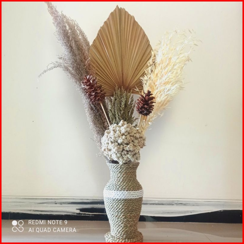 Paket Bunga Kering New Minimalis Vas T20cm Bungakering Edellweis Daunpalem Bungaaestetic