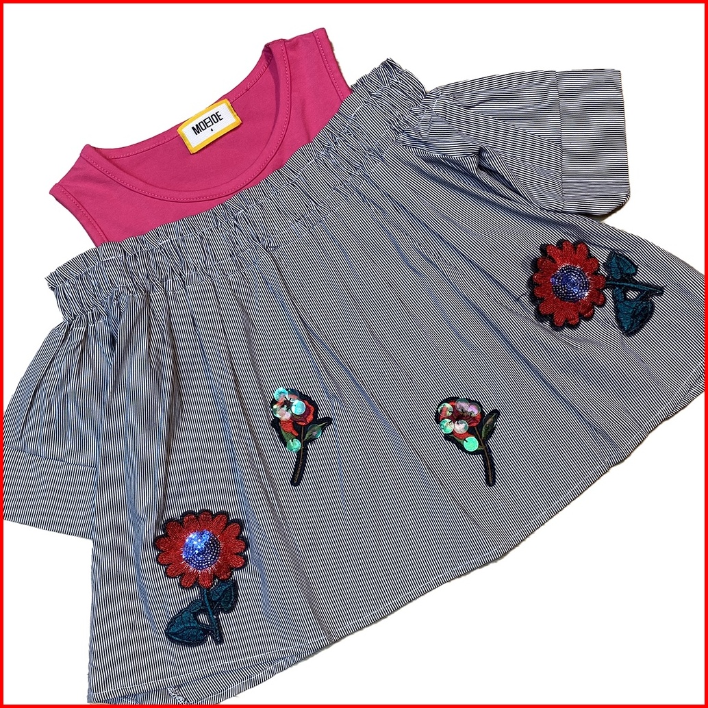 Blouse Sabrina Anak Perempuan Dengan Bordir Bunga Pink - Moejoe