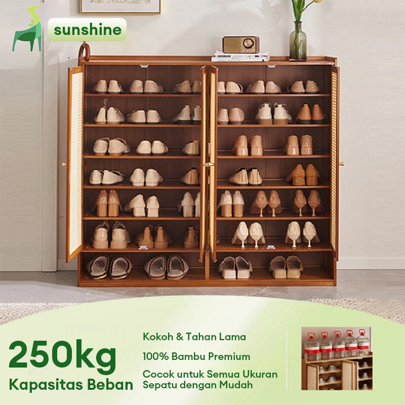 sunshine-Rak Sepatu/Rak Serbaguna/Sepatu Kapasitas Besar Bahan Bambu Alami Tahan Lama