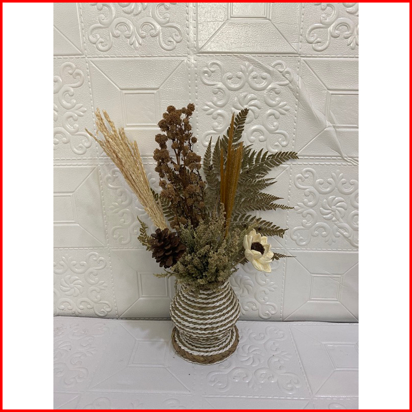 Bunga Kering Hiasan Meja Aesthetic Rustic Vas Belang 20 Cm
