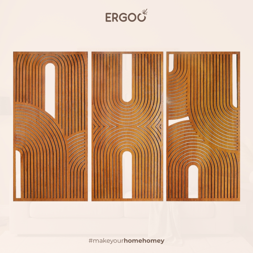 ERGOO Wall Decor Kayu Motif Geometris - Hiasan Dinding Estetik Minimalis untuk Atas Sofa & Ruang Tamu