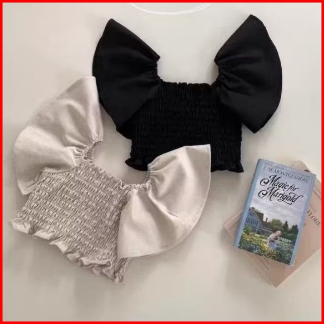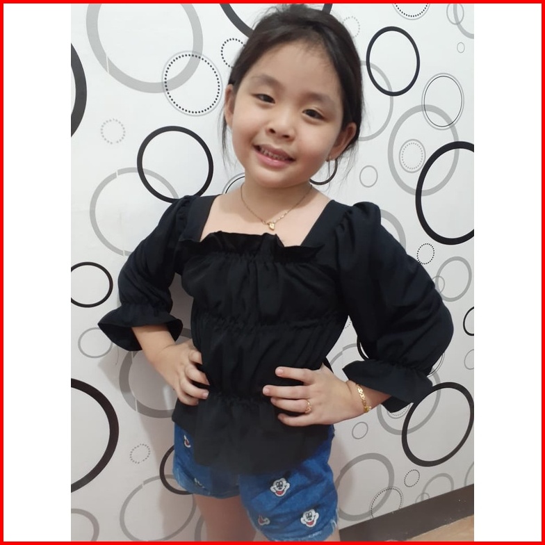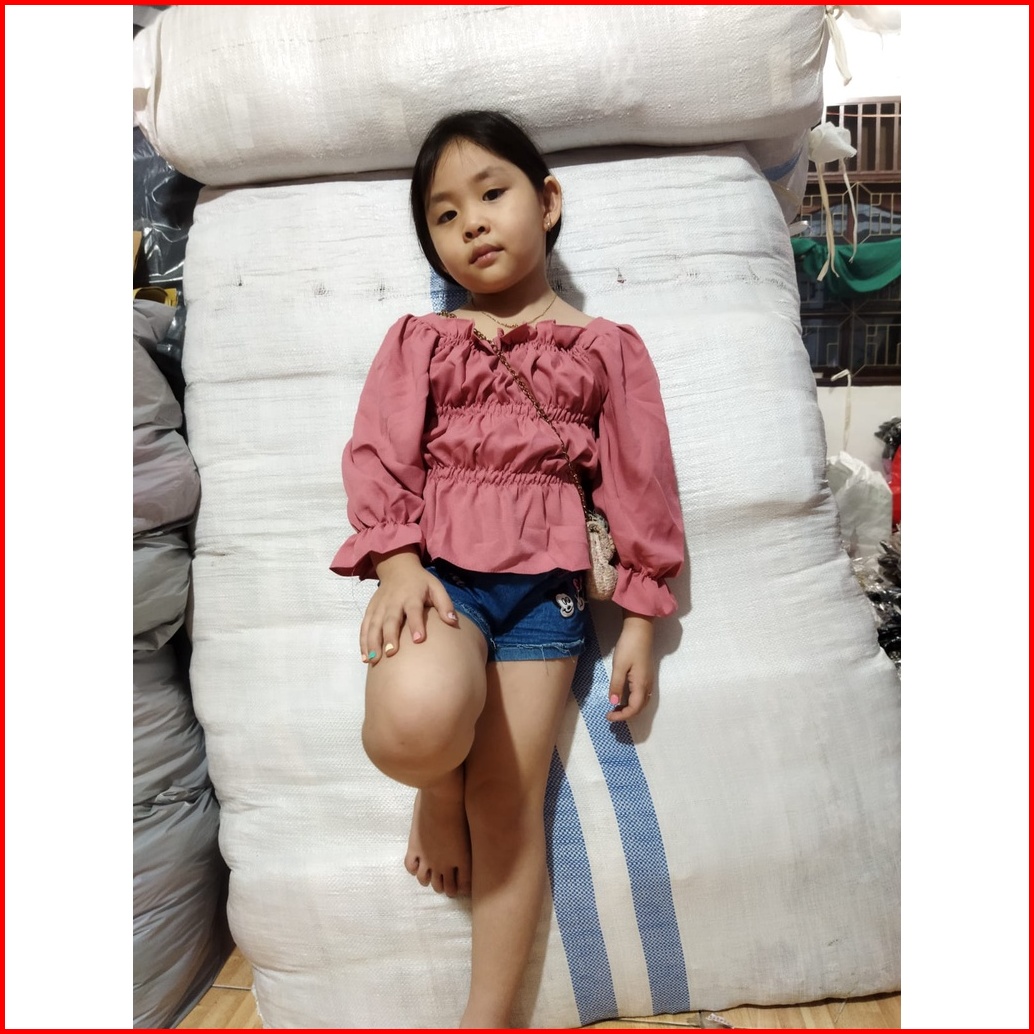 Atasan Baju Sabrina Kerut Anak Cewek Tangan Panjang Korean Style Blouse Cringkle Anak Cewek Korean Style Usia 1-8 Tahun