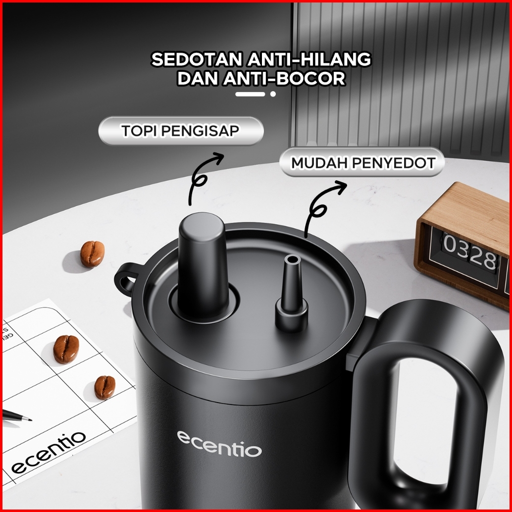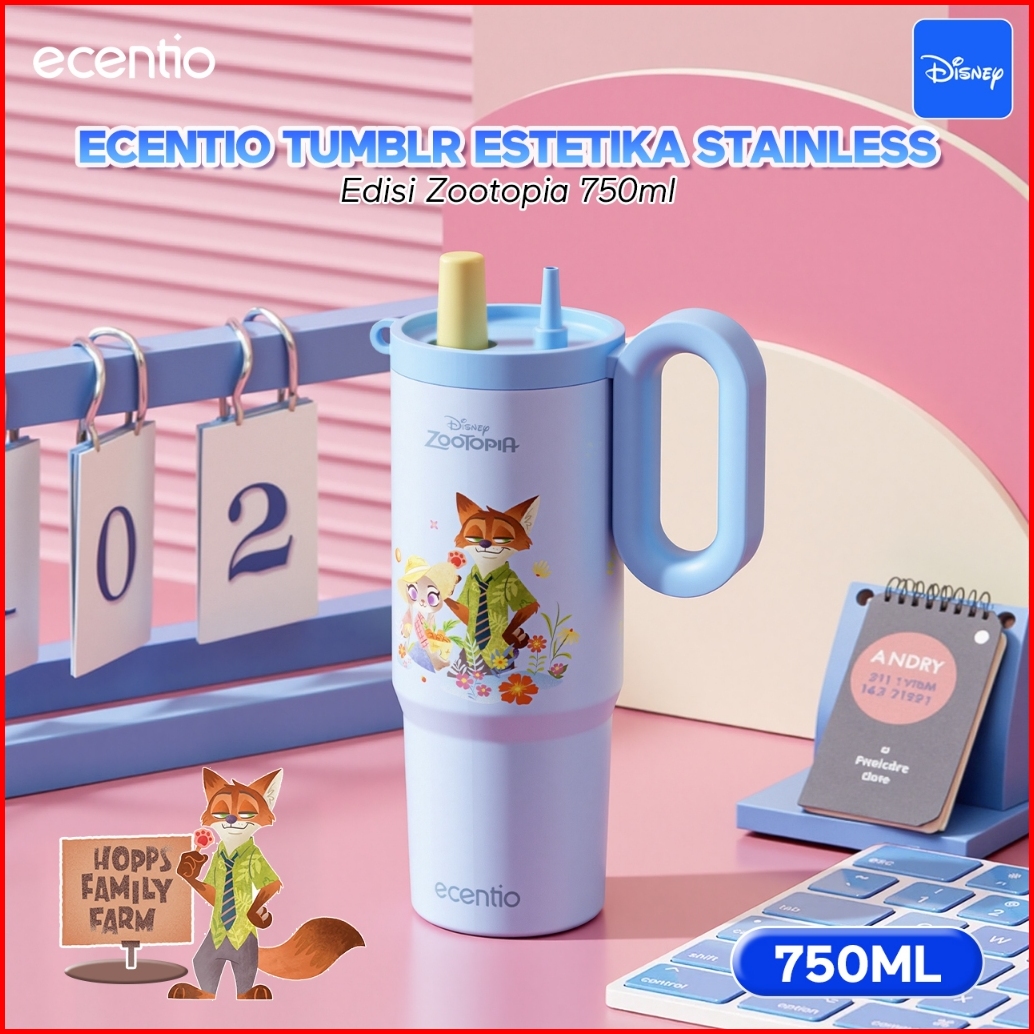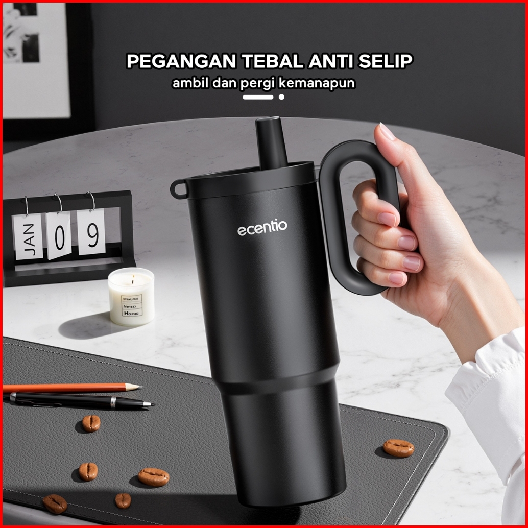 Ecentio Klasik Tumbler Stainless 750ml Tumbler Sedotan Dengan Tutup Vacuum Insulated Tahan Panas Dingin 24 Jam Tumbler E