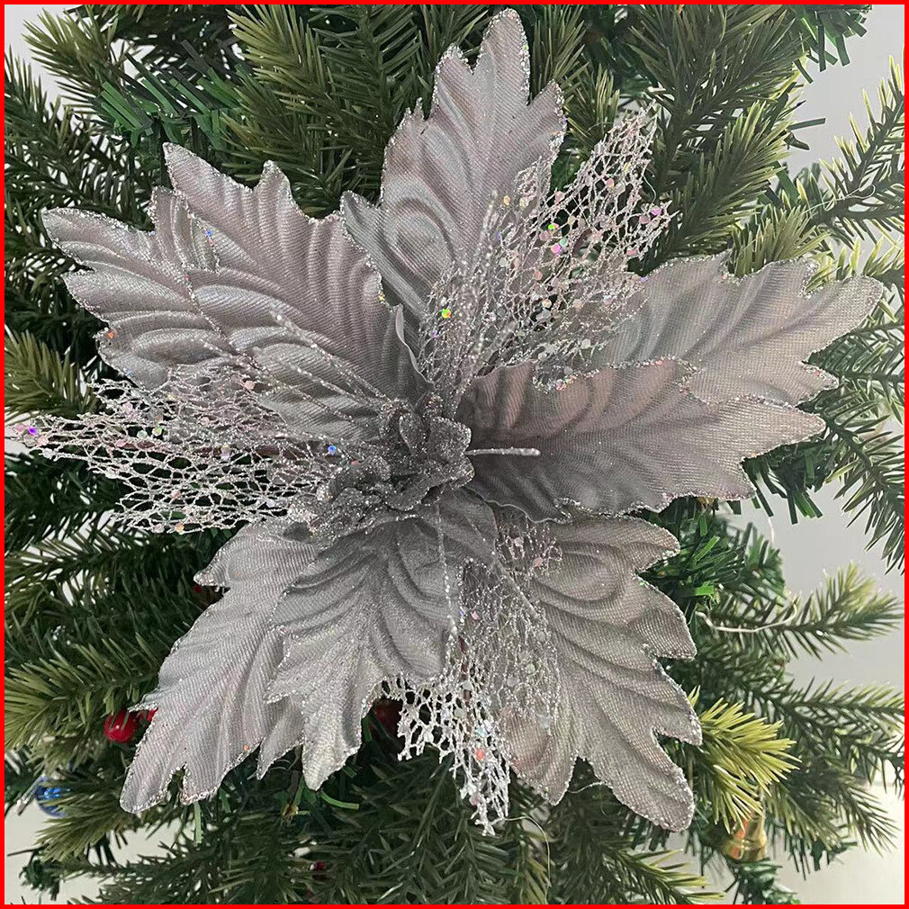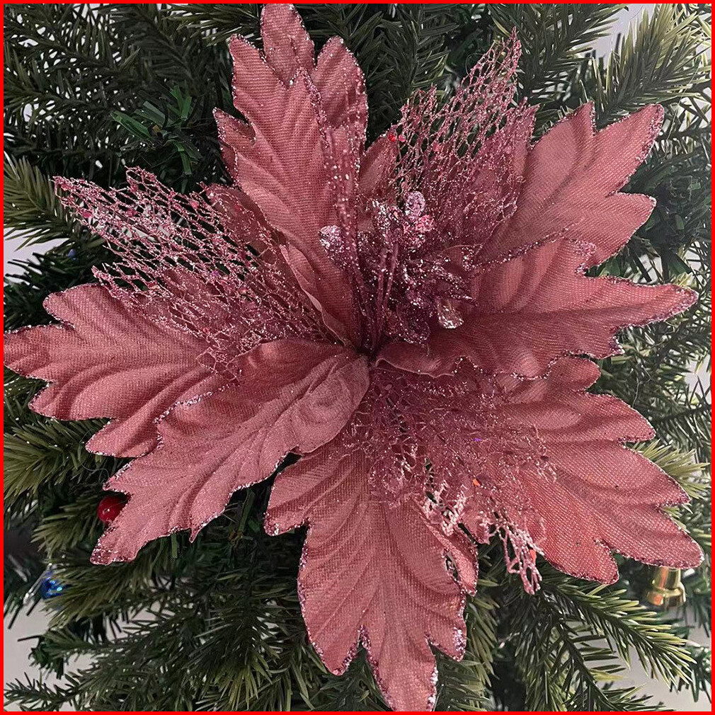 Vvv Aksesoris Ornamen Bunga Cantik Pohon Natal Bunga Glitter 24cm Christmas Artificial Plants Hiasan Mainan Desember Pos