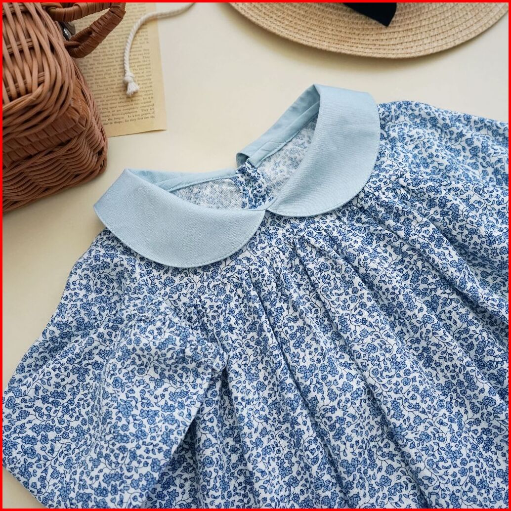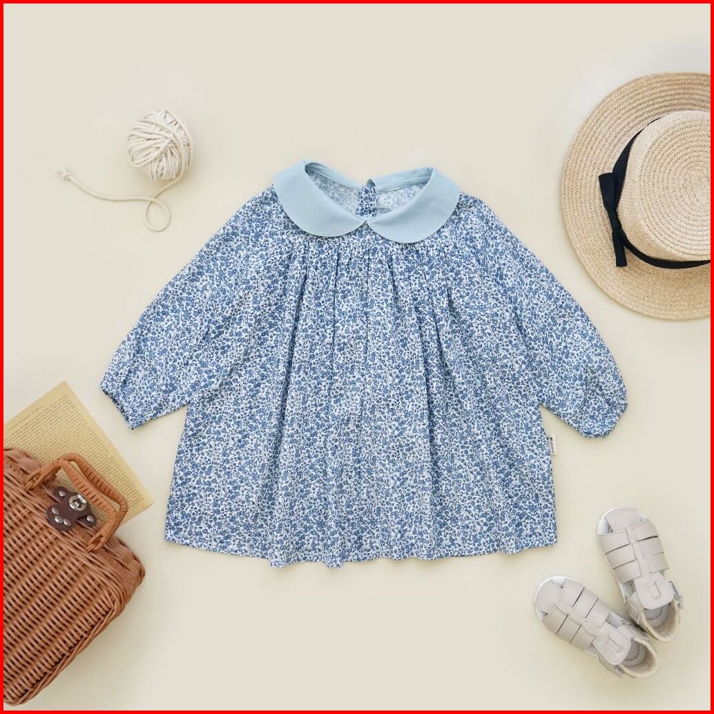 Lalucu Lobelia Blouse Anak Limited Warna Biru Bunga Kecil Korean Style Anak Usia 1 - 7 Tahun Rayon