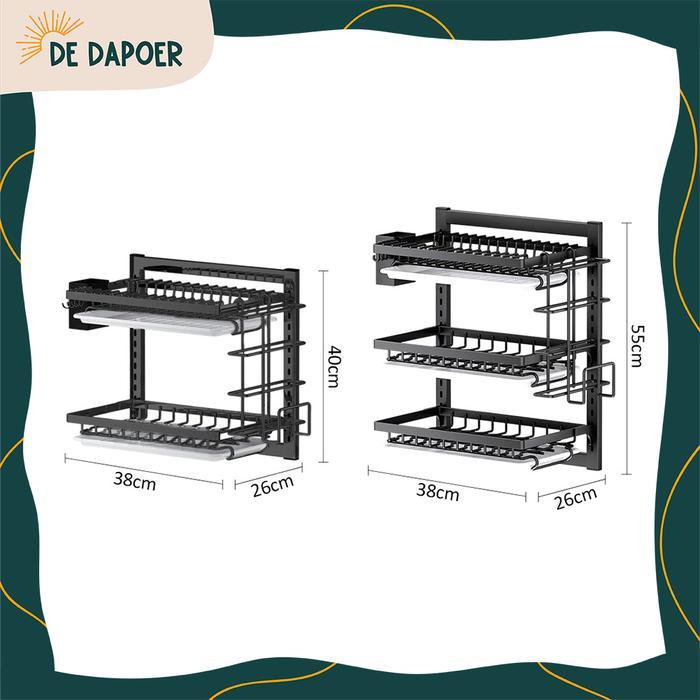 Rak Dapur Gantung Lemari Piring Tempel Dinding Tempat Penyimpanan Mangkok Gelas Spatula Stainless 2