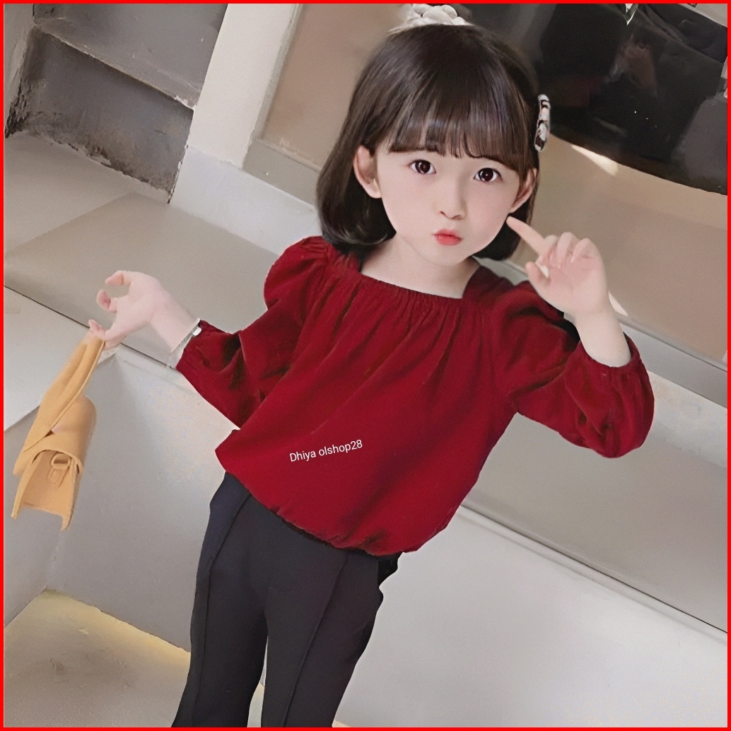 Blouse Anak Perempuan Lengan Panjang Model Korea Style Terbaru Atasan Anak Perempuan Leher Persegi