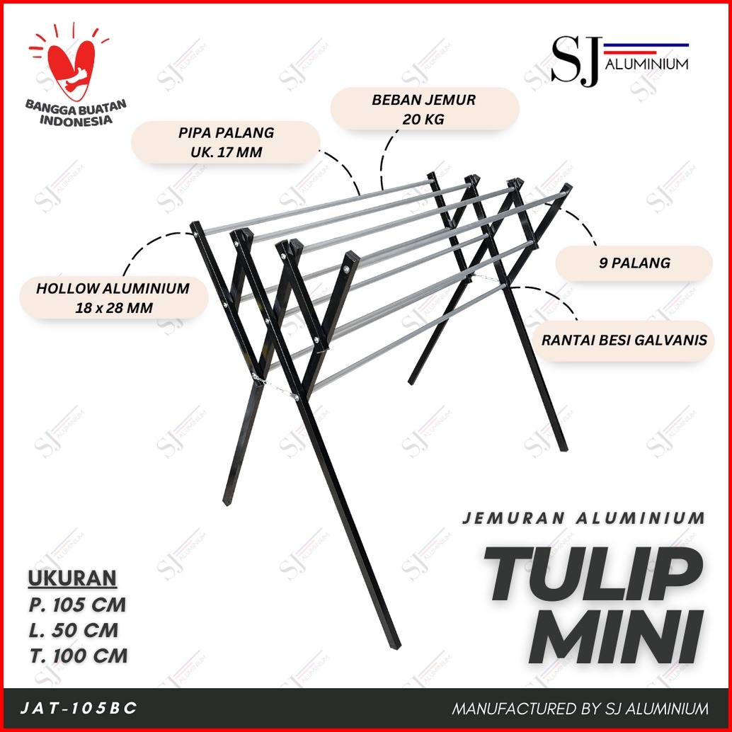 Jemuran Baju Aluminium Rak Handuk Anak Bayi Jemuran Pakaian Lipat Aluminium Rh Tulip Mini Warna Hitam - 105 Cm 1 05 Mete