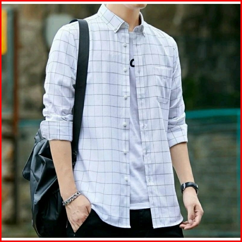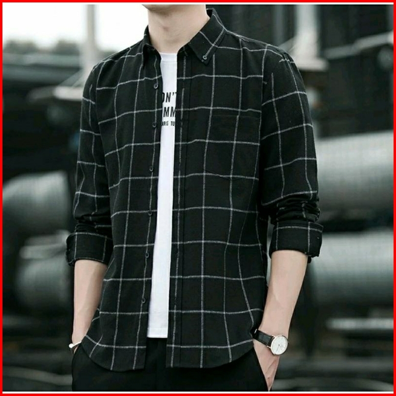 Baju Kemeja Pria Kotak Kotak Lengan Panjang Kasual
