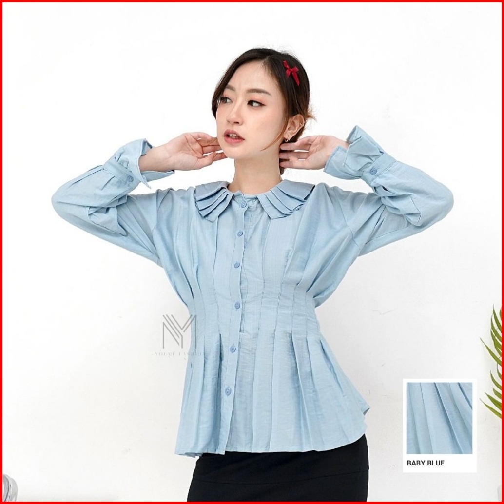 Ym - Talea Blouse Kemeja Lipit Wanita Korean Style
