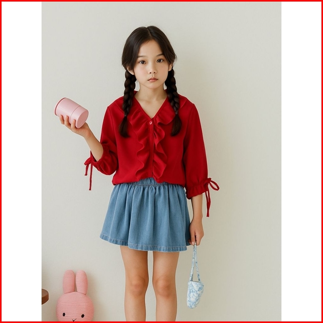Blouse Rempel Anak Remaja Usia 7-12tahun Atasan Baju Anak Warna Merah Blouse Zerlinda 705 Ro