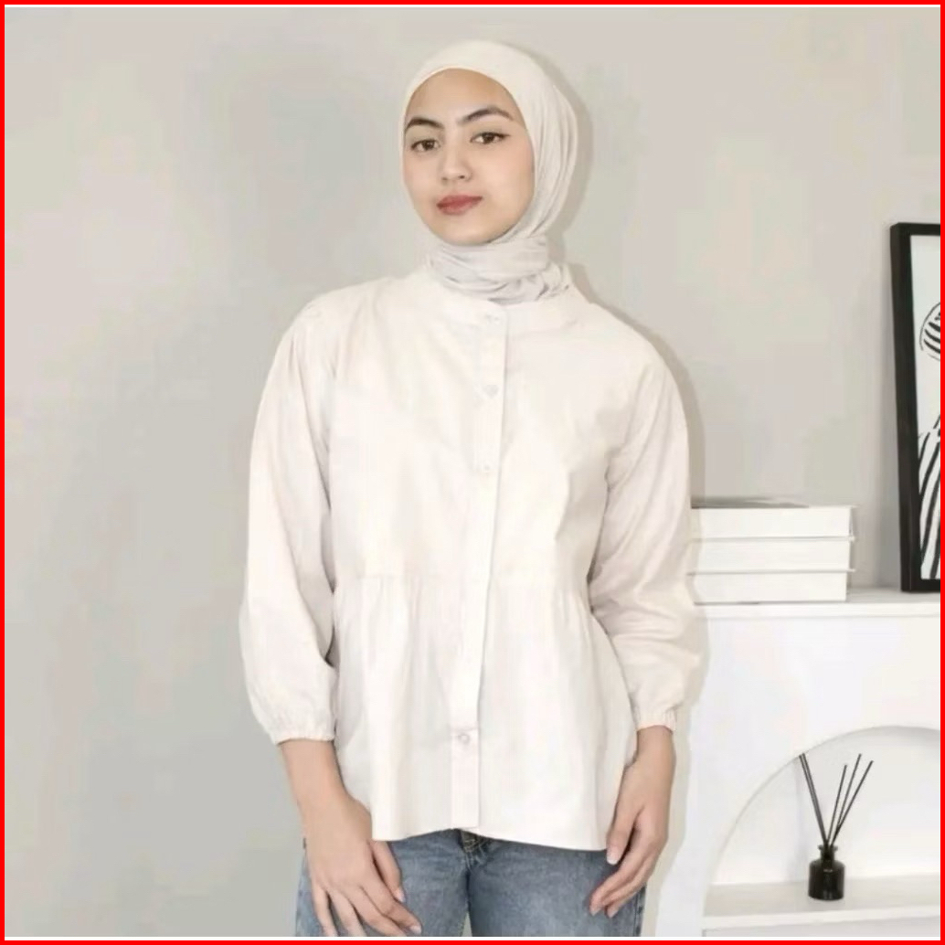 Kyren Blouse Ruffle Katun Linen Wanita Semi Crop - Blouse Katun Wanita