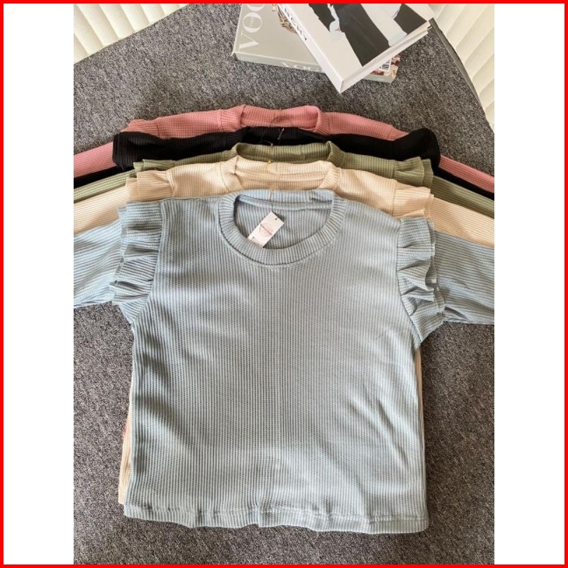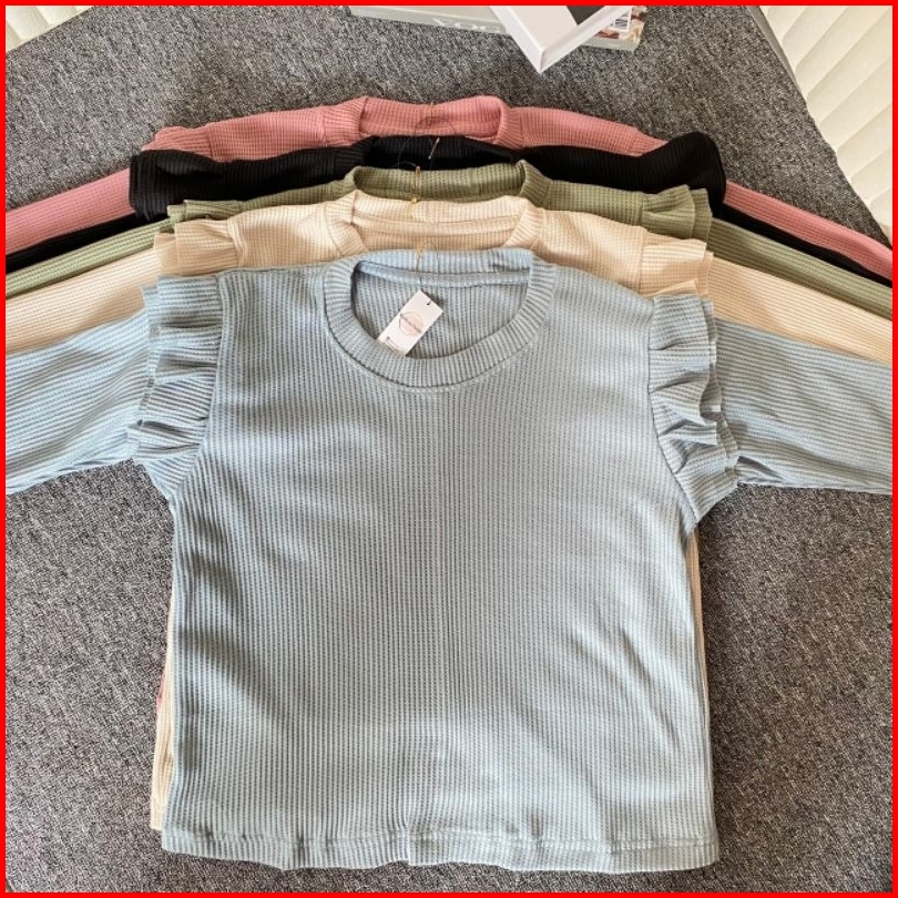 Ruffle Korean Blouse Blouse Ruffle Pundak Atasan Knit Wanita Blouse Waffle