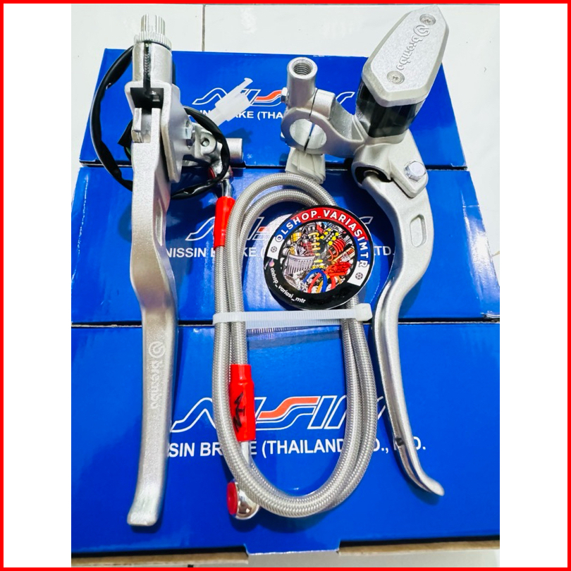 Paketan Full Silvet Master Rem Tabung Kotak Big Logo Selang Rem Serat Silver 90-95cm Semua Motor