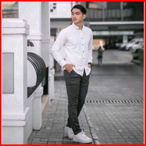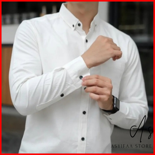 Kemeja Pria Putih Tulang Lengan Panjang Polos Baju Hem Cowok Simfit Formal