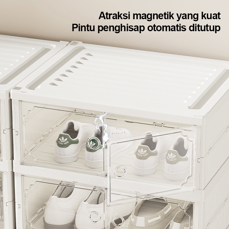 【Tanpa Instalasi】Lemari Sepatu Rak Sepatu Susun Lipat Tertutup Bening Lemari Lipat Pintu Magnet/Kotak Sepatu Lipat