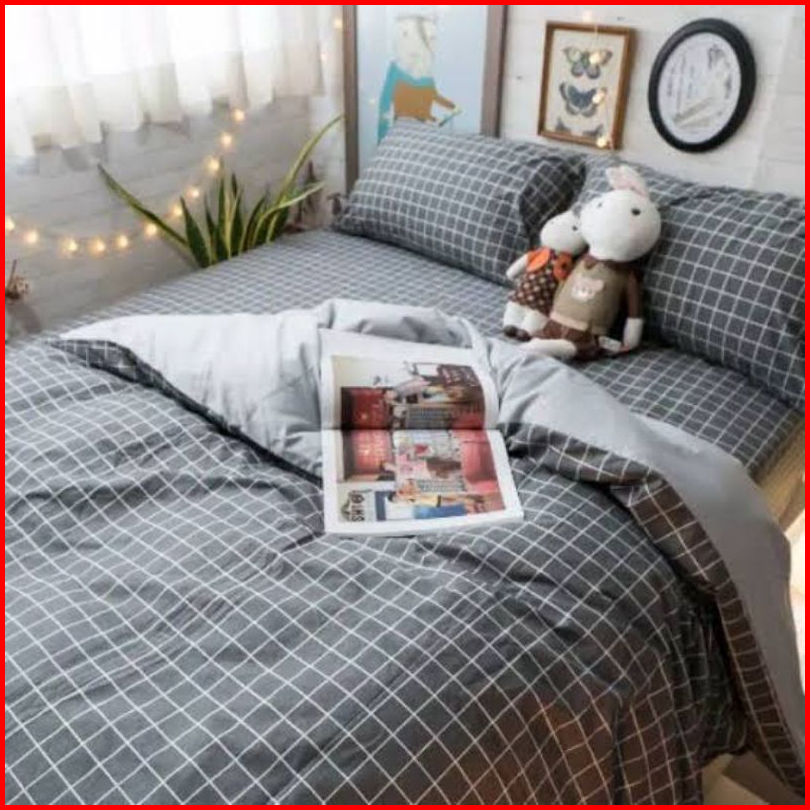 Paling Murah Sprei One Set Sarung Bantal Sarung Guling Paling Murah Polycina Motif Golden Kotak-kotak Series Aesthetic D