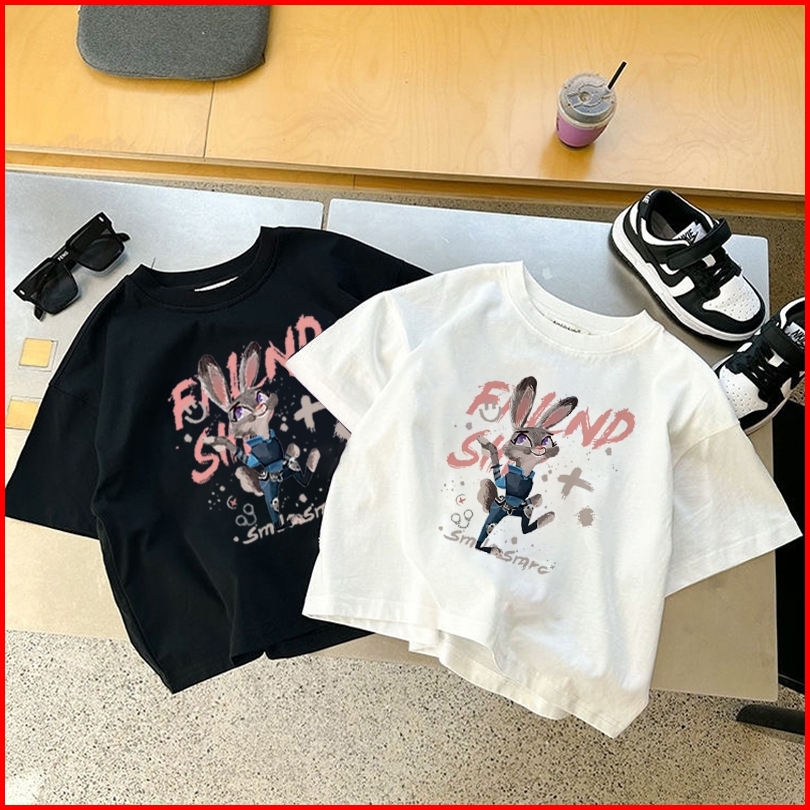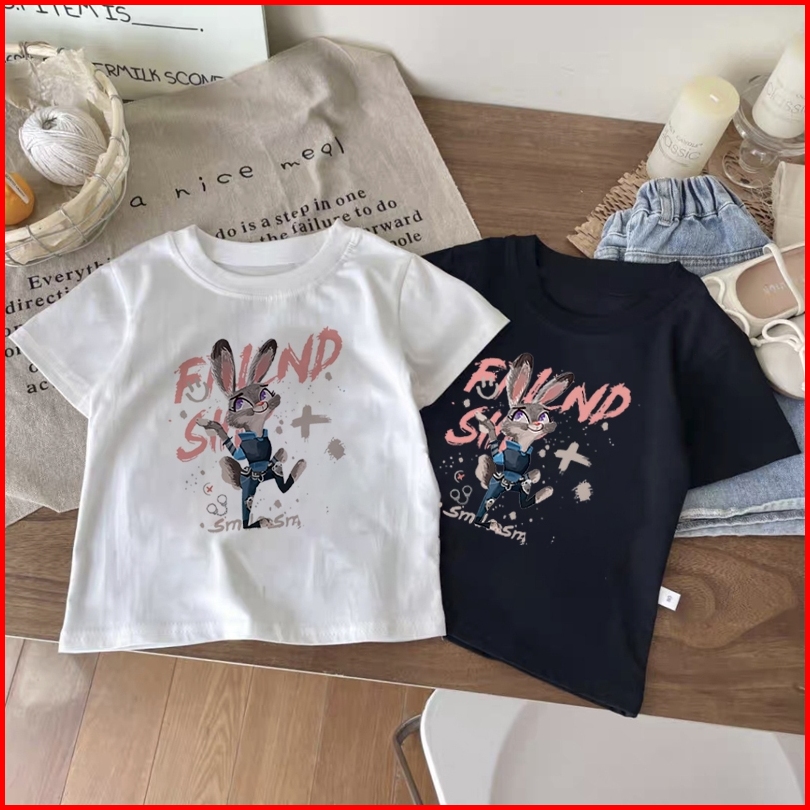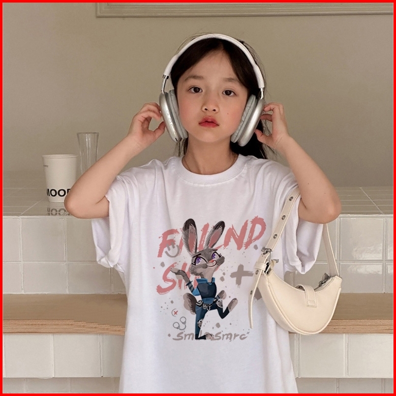 Korea Style Putih Cocobaby T Shirt Cotton Kaos Atasan Anak Laki-laki Perempuan Petugas Kelinci Yang Sederhana Dan Trendi