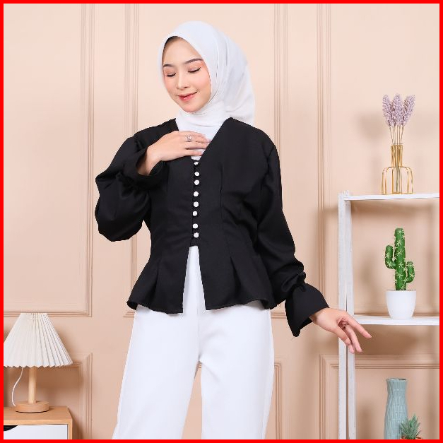 Larissa Top Blouse Wanita Korea Kemeja Blouse Korea Hijab Friendly Kemeja Atasan Wanita