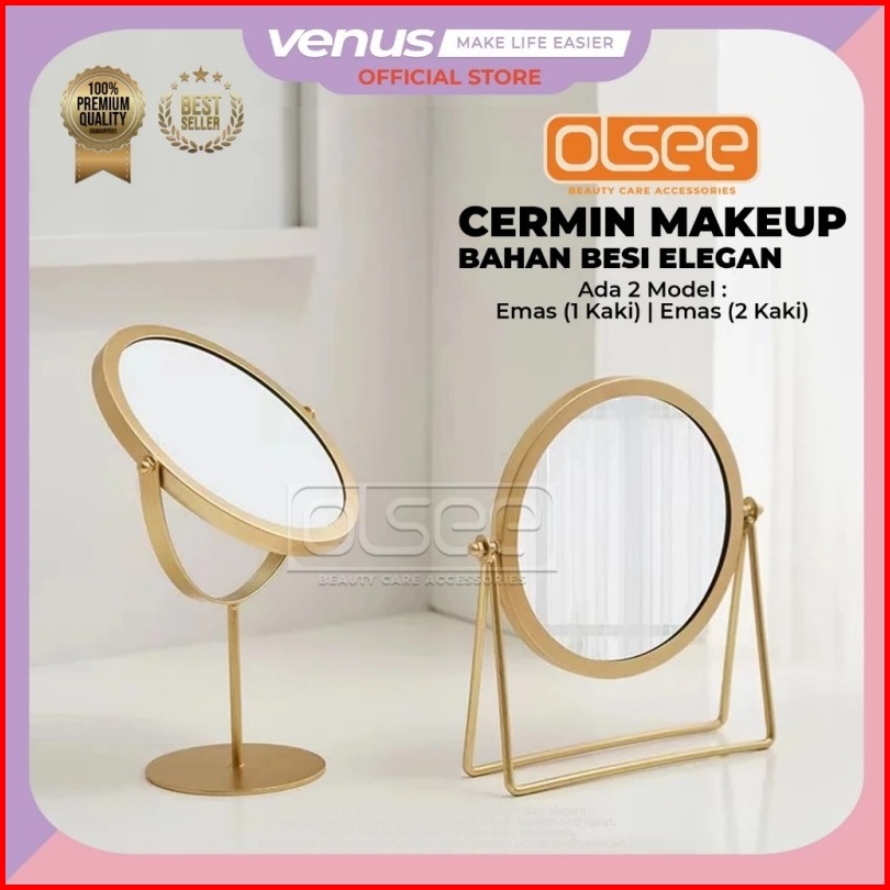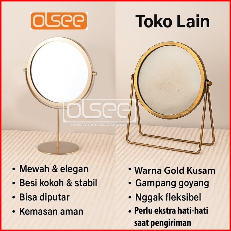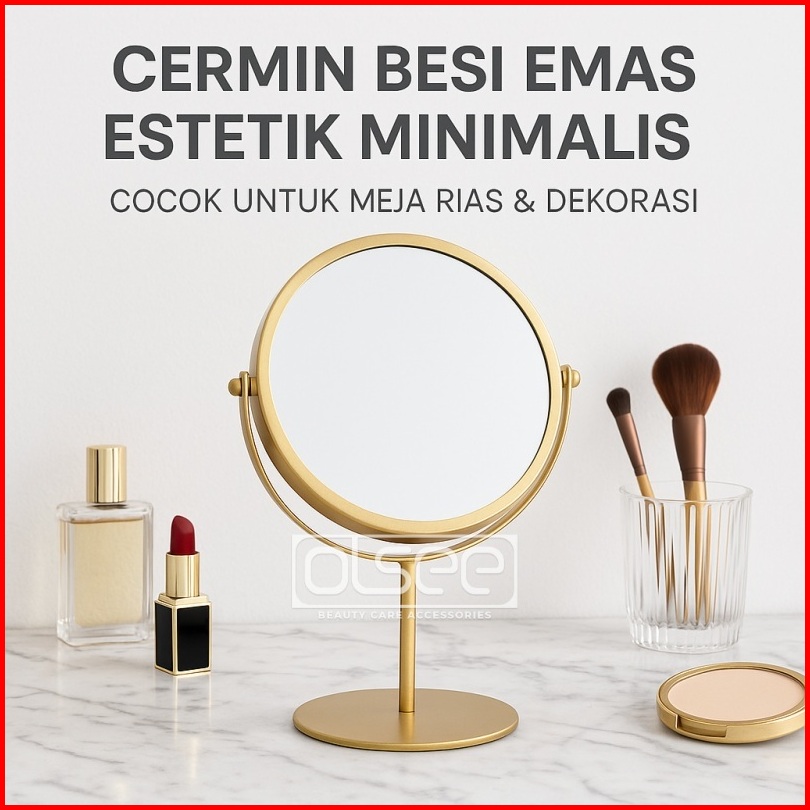 Olsee - Cermin Make Up Meja Aesthetic 2 Sisi Standing Mirror Korea Kaca Rias Bulat Elegan Cermin Minimalis S1226