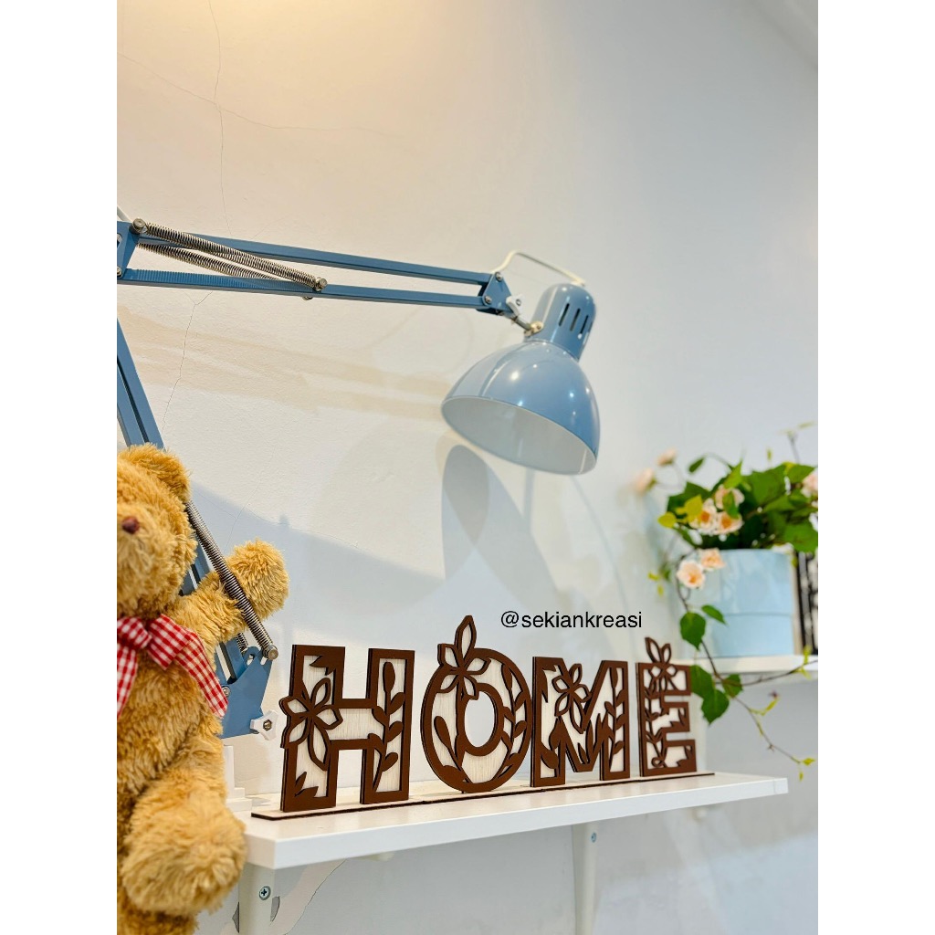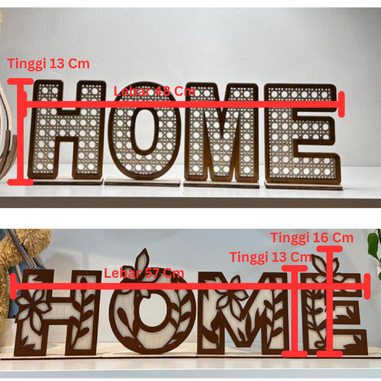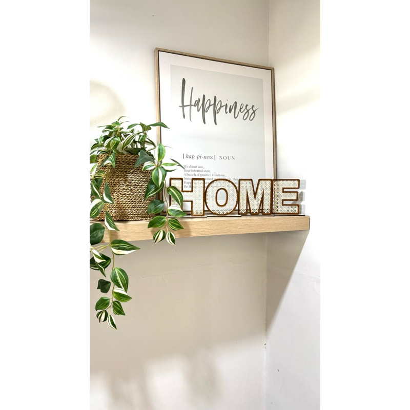 Pajangan Kayu Huruf HOME Motif Rotan Dekorasi Hiasan Ruang Tamu Aesthetic