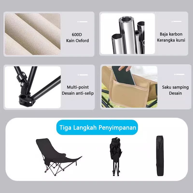 OutdoorKu Kursi Lipat 4 Posisi Adjustable Sandaran Tinggi Kursi Lipat Outdoor Beban 200KG Tas Gratis