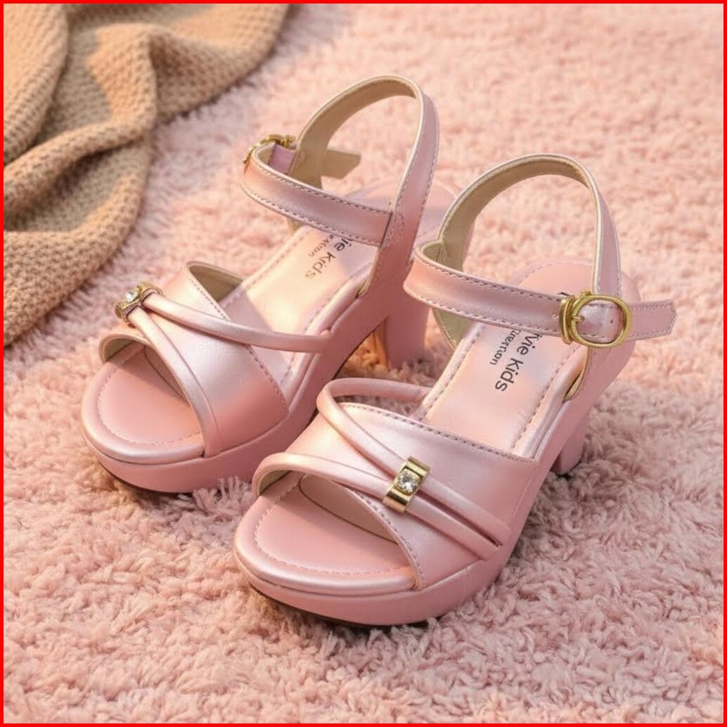 Quds Kids - Sandal Pesta Anak Perempuan Pink Rekomendasi Kado Model Hak Heels 5cm Tali Permata