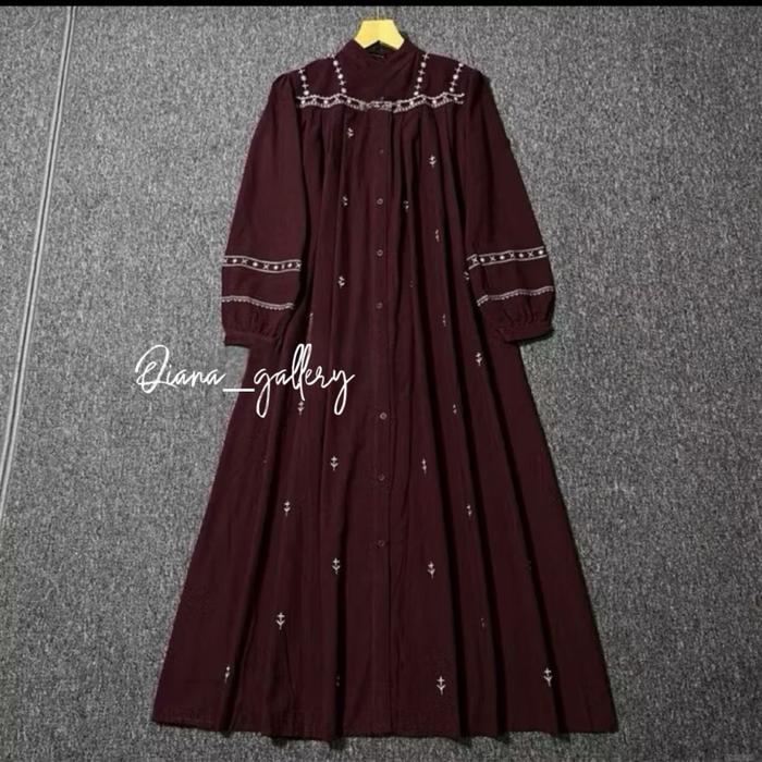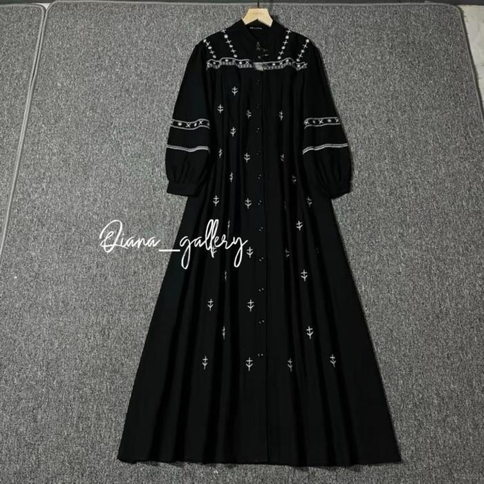 Davina Dress Rayon Twill Bordir Premium By Qiana_Gallery Ld 120Cm Pb 135Cm - Davina Hitam, Standart Ld 110Cm