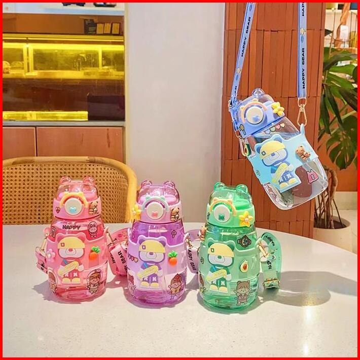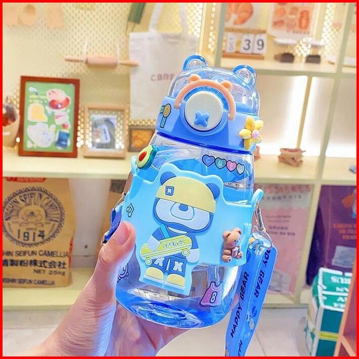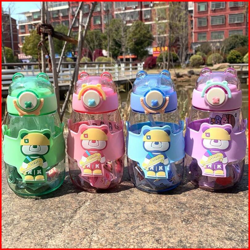 Botol Minum Anak Motif Beruang 600ml Lucu Botol Anak Karakter Viral 600ml Plastik -1955