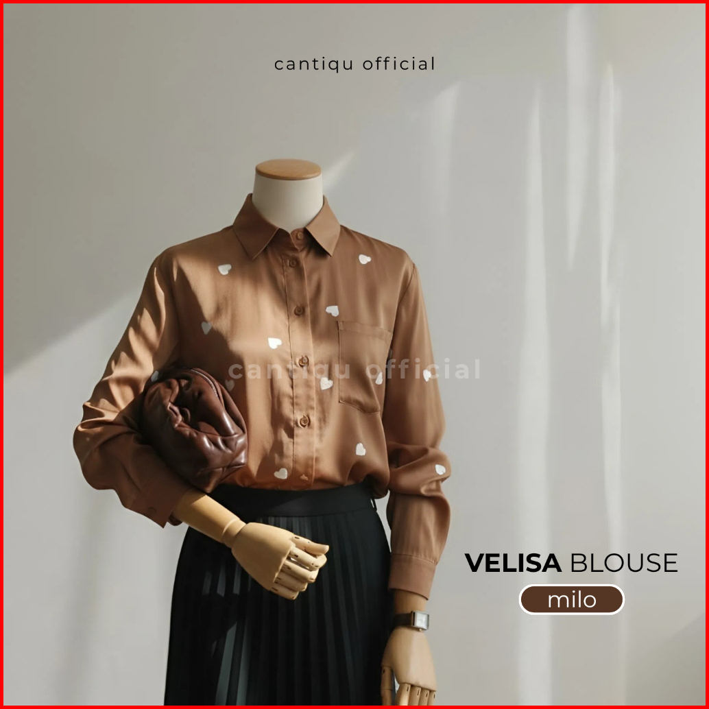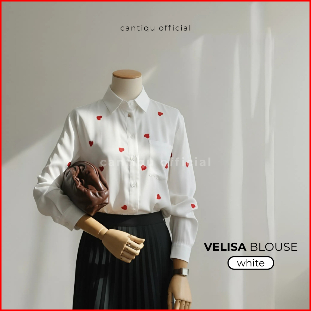 Cantiqu - Kemeja Wanita Rayontwill Atasan Baju Blouse Bordir Motif Love Korean Style Velisa