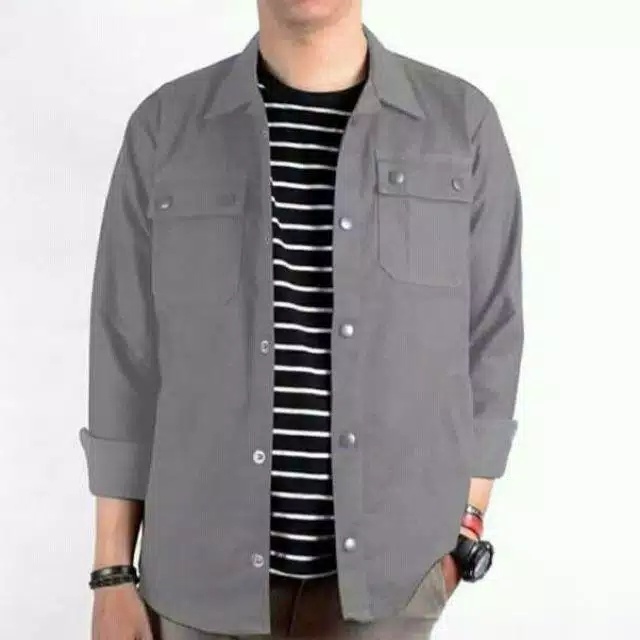Jaket Semi parka Pria Wanita Kancing Hitam Jaket Trucker Pria Canvas Parka Full Size