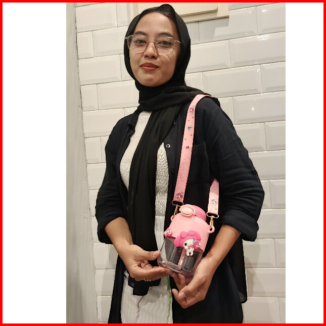 Botol Minum Sanrio Free Stiker Lucu Tempat Minum Motif Cinnnamoroll Kuromi Melody Jumbo Tali -2309