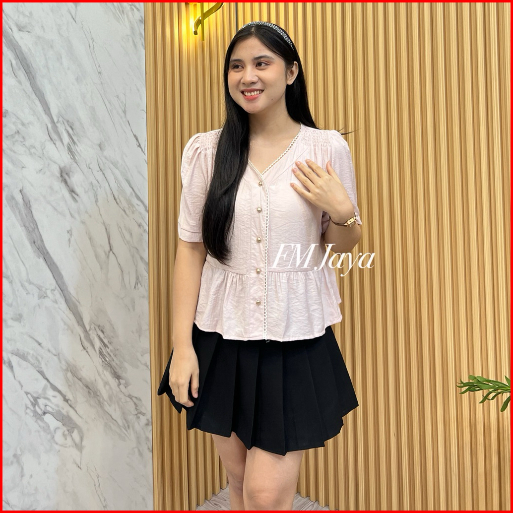 Fm-g Atasan Renda Wanita 8628-1 Atasan Blouse Wanita Blouse Wanita Modern Atasan Lengan Pendek Wanita