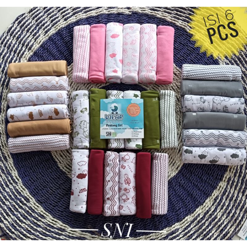6 pcs bedong bayi motif 110 X 90 cm SNI viear baby