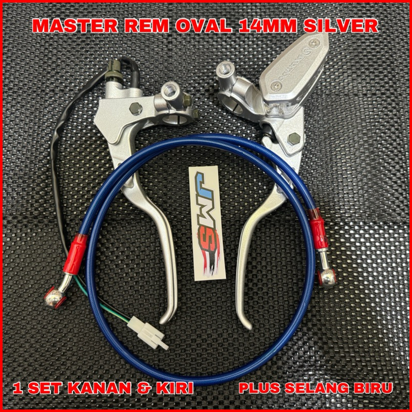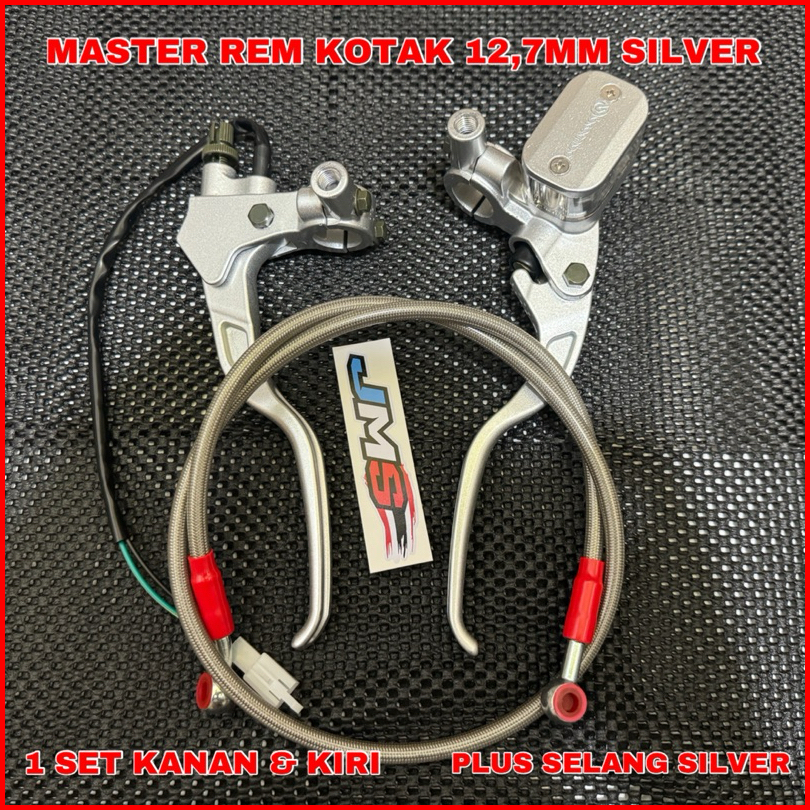 Promo Terbaru Master Rem Set Kanan Kiri Tabung Kotak Dan Oval Warna Silver Plus Selang Rem Depan Panjang 95cm Universal