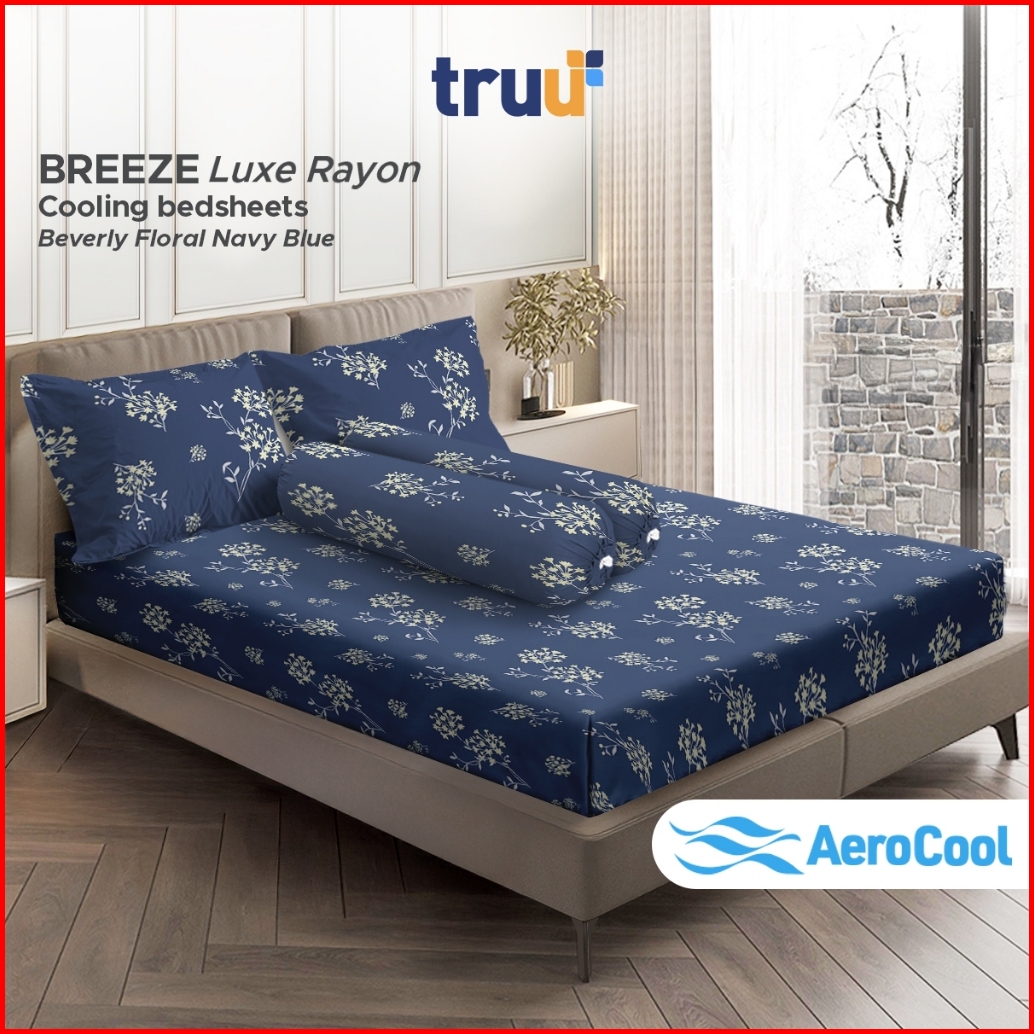 Truu Breeze Luxe-rayon Sprei Delicate Beverly Floral Dark Blue Tr.trr018 120 160 180 200cm Tinggi 30 40 Cm Sensasi Dingi