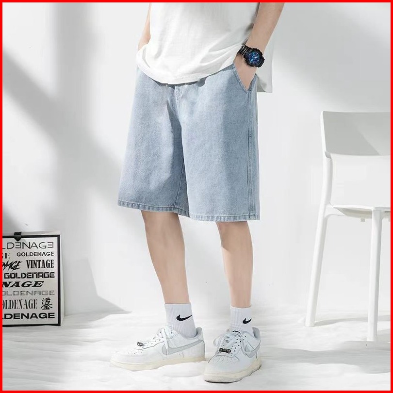 Celana Pendek Pria Jeans Korean Style Biru Muda Cowok Jeans Jumbo Fashion Dewasa