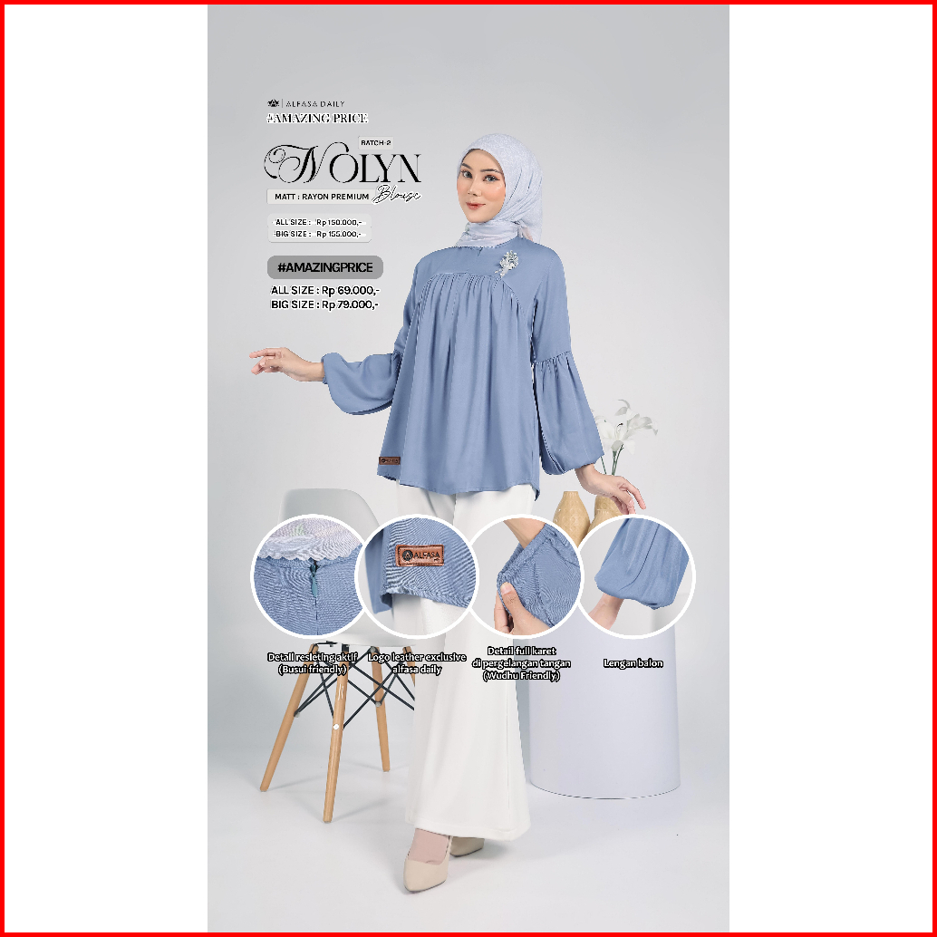 Nolyn Bluse Atasan Wanita Rayon Premium - Alfasa Daily