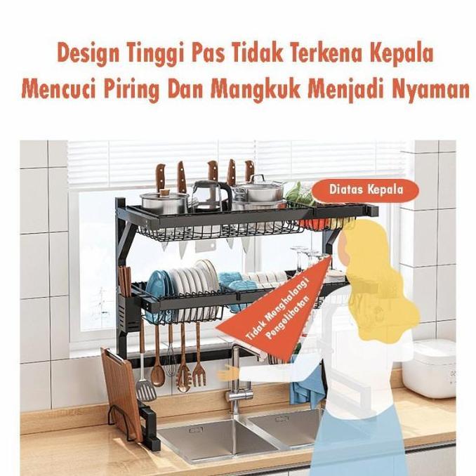 New- Rak Piring Wastafel 2 Susun 85 cm Cuci Piring Stainless