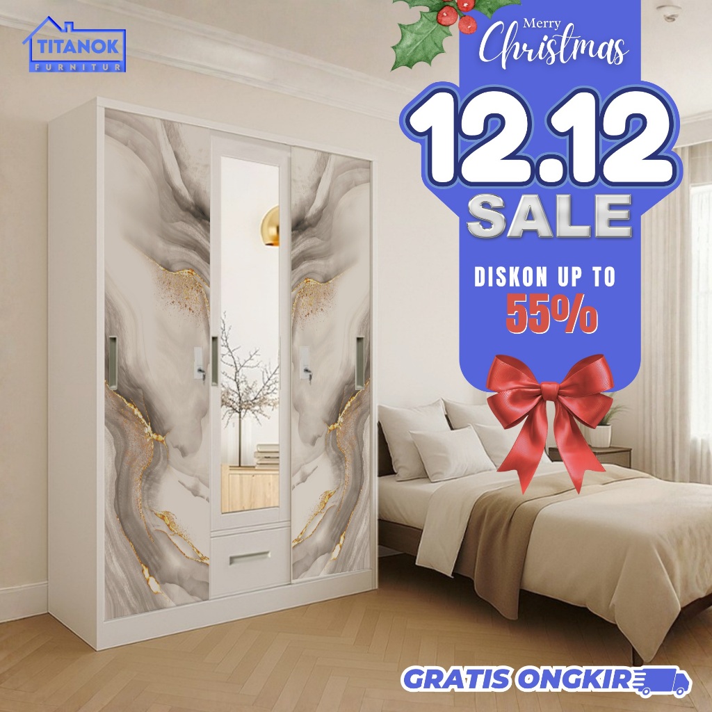 Titanok Official Lemari Pakaian Besi 3 Pintu Sliding Jumbo - 120cm 1 Laci 1 Batang Rak Baju