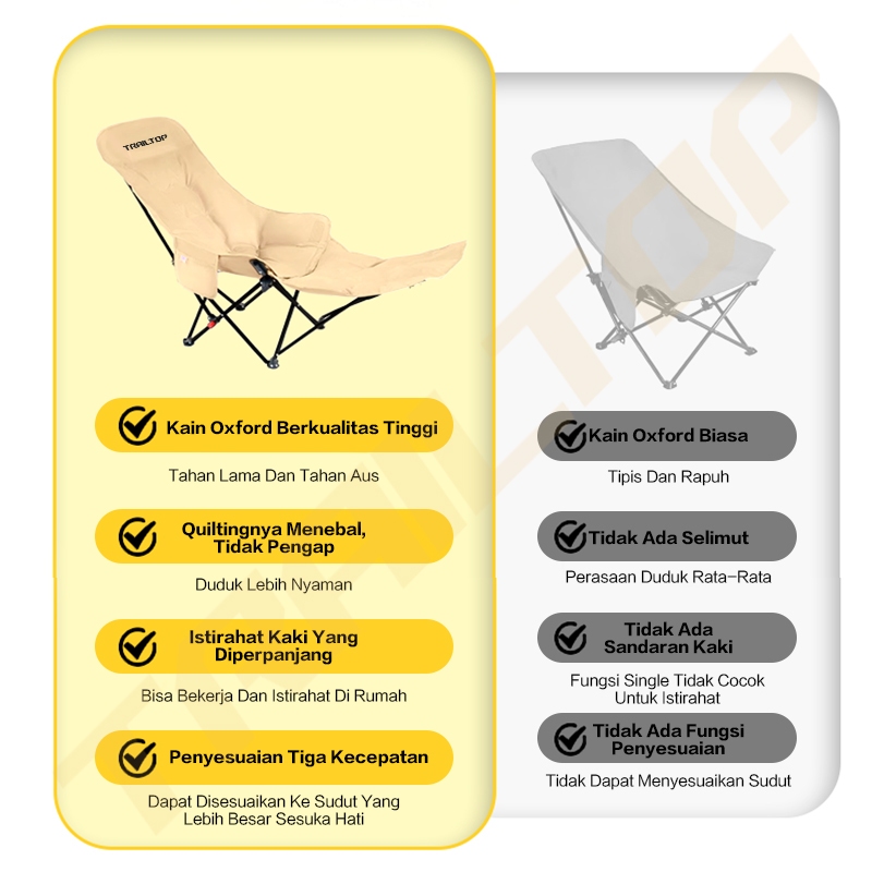TrailTop Kursi Lipat Pantai Sandaran Kaki Kursi Outdoor Portable Santai untuk Piknik & Camping