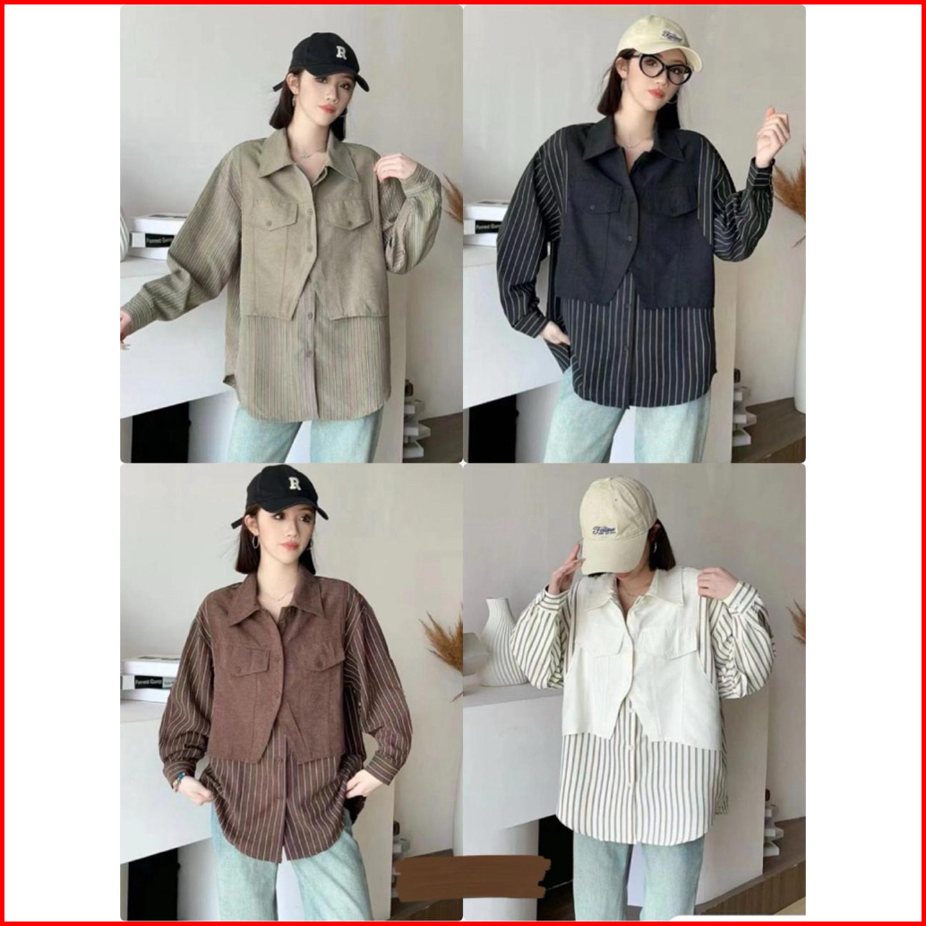 Blouse Wanita Motif Salur Bahan Katun Suede Import