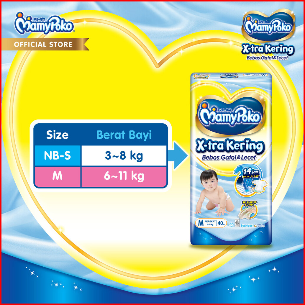 Mamypoko X-tra Kering - M 40 - Popok Perekat Newborn Bayi Baru Lahir- 2 Packs