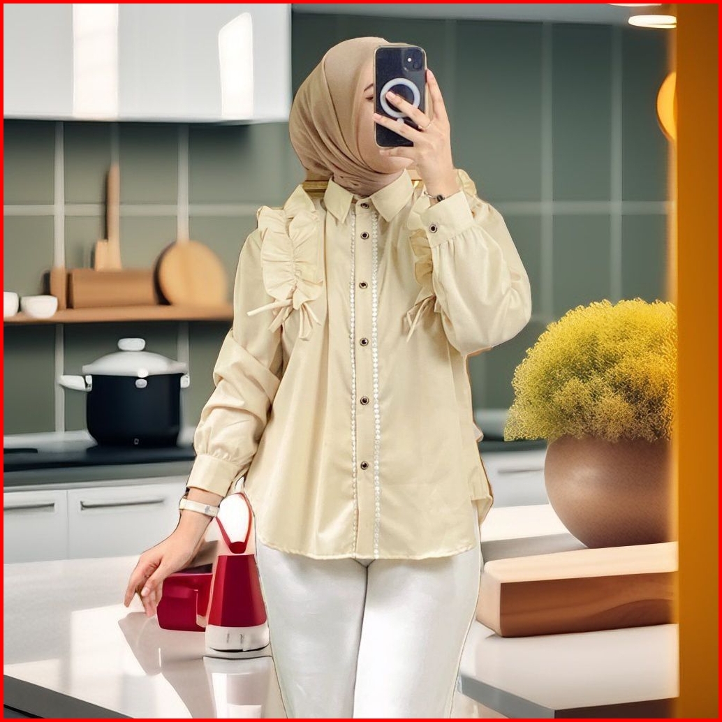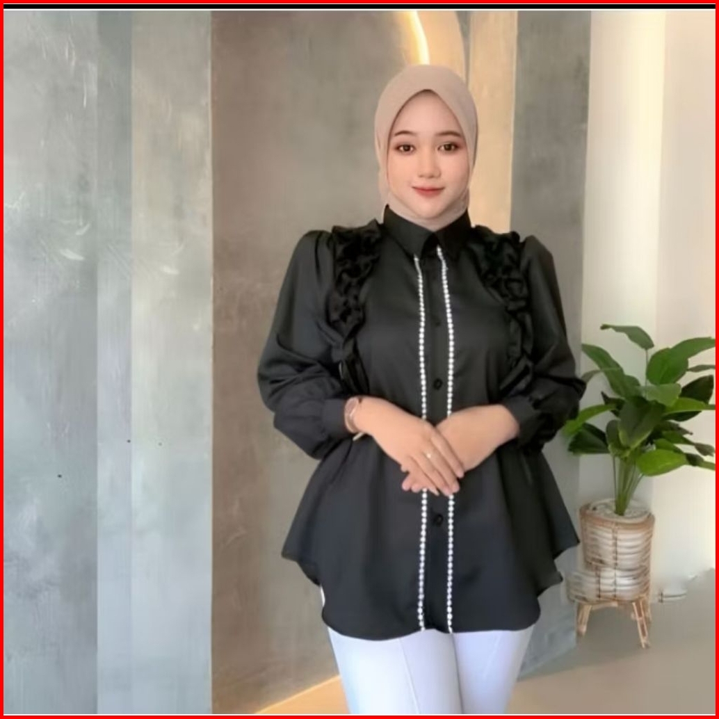 Blouse Renda Yasika Atasan Kemeja Wanita Kancing Kekinian Elegan Casual