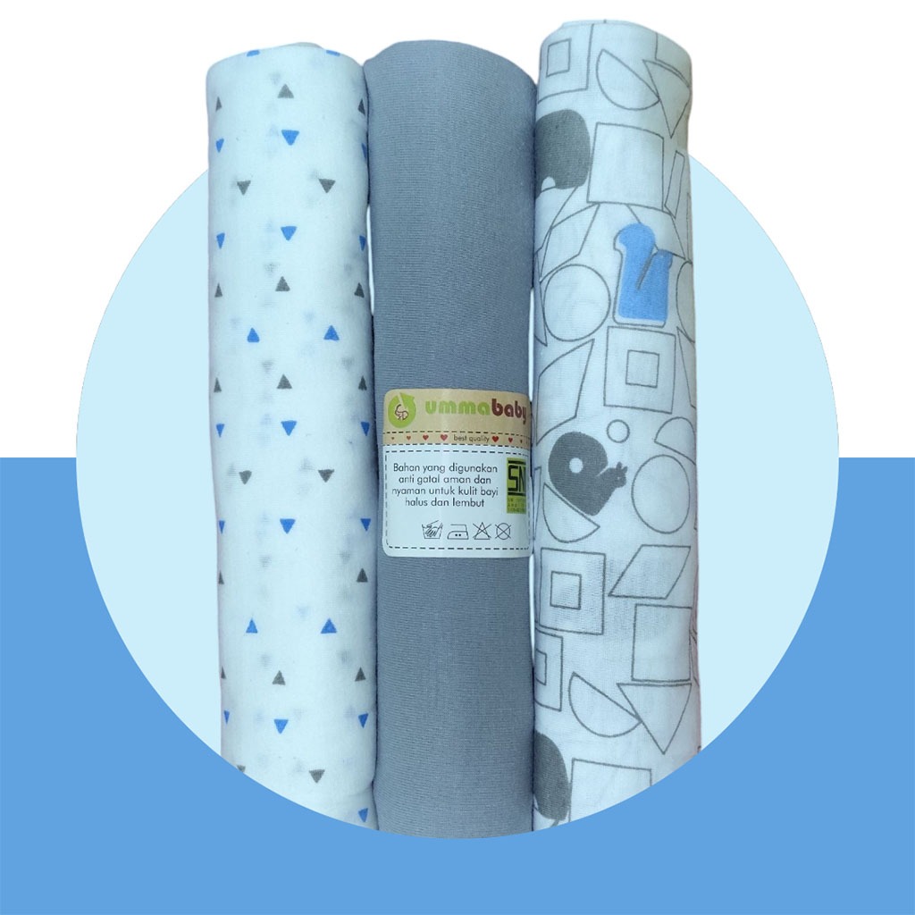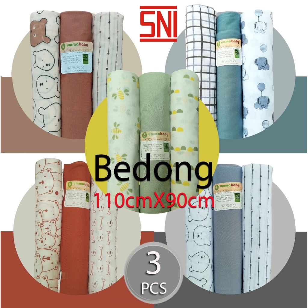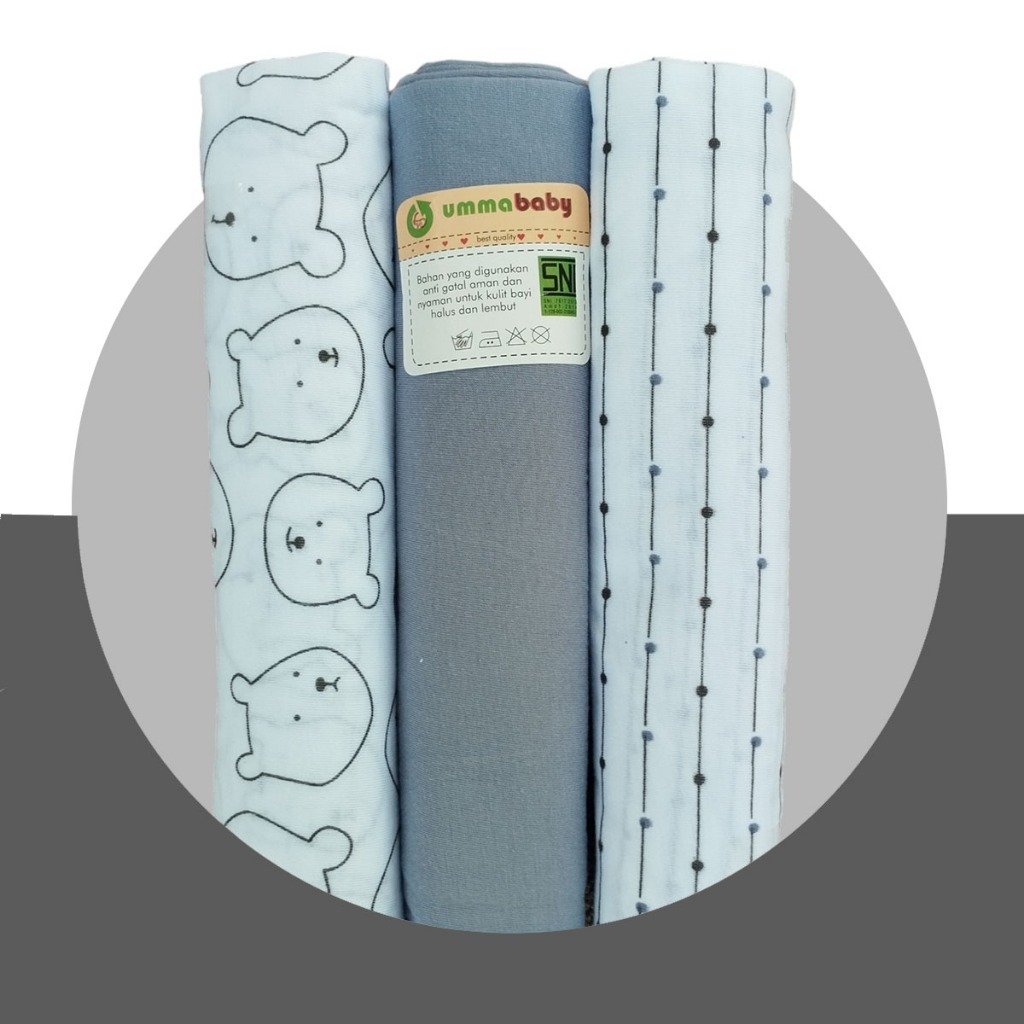 ummababyshop 3pcs Bedong Bayi Polos Motif Lucu SNI 110x90 Lembut Halus Selimut Bayi Alas Bayi Murah Kain Lebar Newb