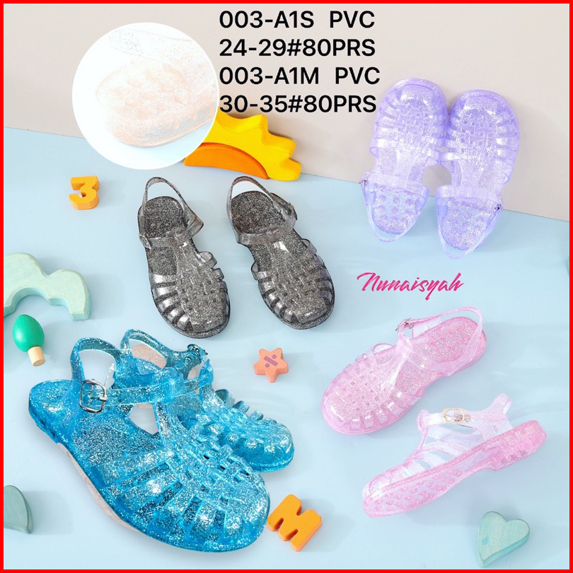Sandal Anak Karet Jelly Tali Wedges Gliter Import Terbaru