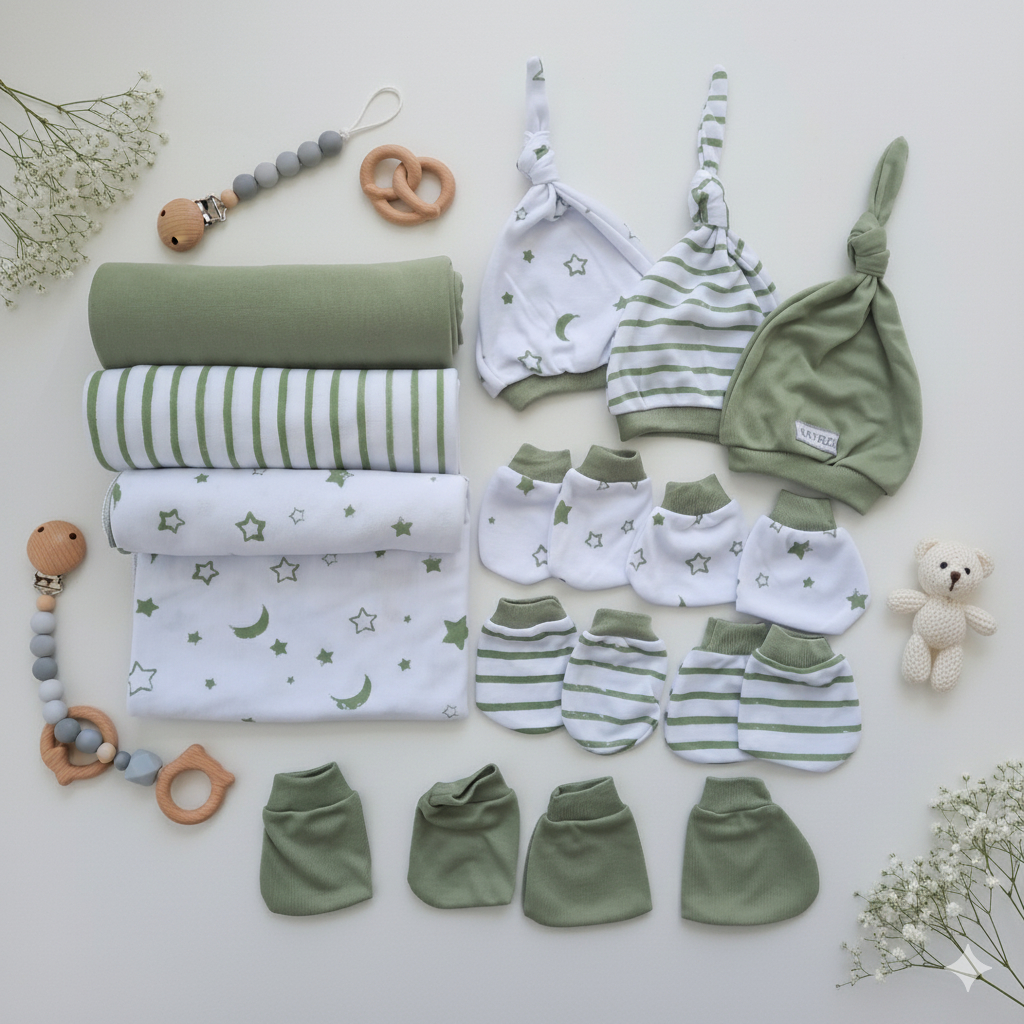 9in1 Paket 3 Bedong Sartaki Kupluk Bayi Baru Lahir Seri Abu